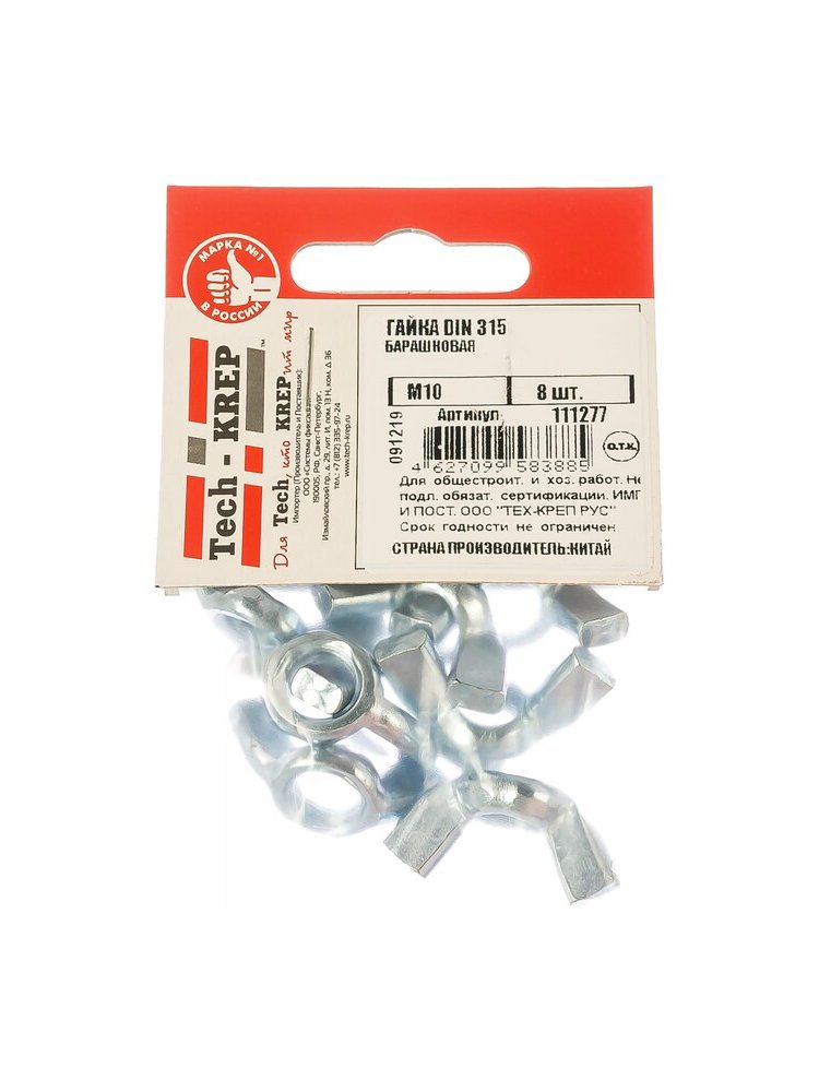 Гайка DIN315 барашковая оцинк. М10 (8 шт) - пакет Tech-Krep