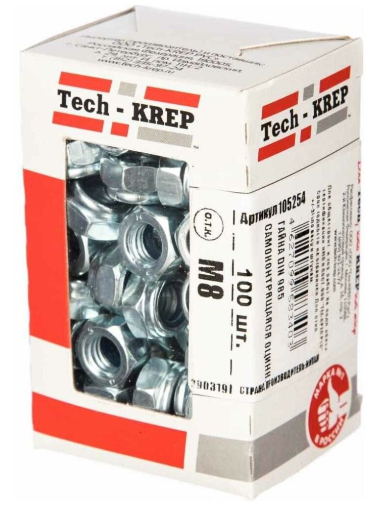 Самоконтрящаяся гайка с нейлоновым кольцом, выполненная по стандарту DIN 985, имеет размер М8 и поставляется в удобной упаковке по 14 штук от бренда Tech-Krep. Изготовлена из прочной стали с цинковым покрытием, что обеспечивает надежную защиту от коррозии даже в условиях повышенной влажности. Нейлоновое кольцо внутри гайки предотвращает самопроизвольное раскручивание соединения под воздействием вибраций, что гарантирует долговечность и безопасность крепления. Подходит для использования с болтами и шпильками соответствующего диаметра.