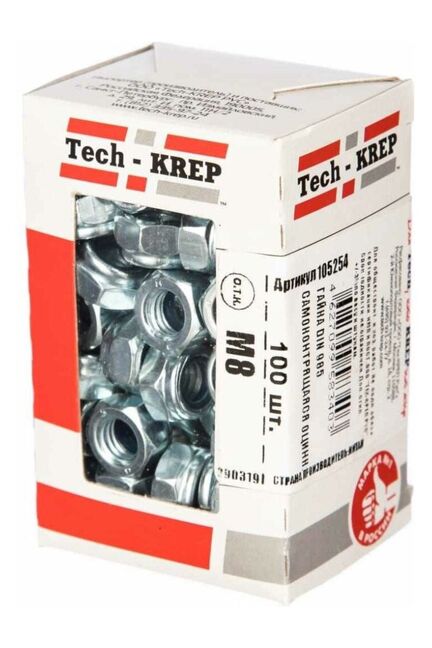Гайка самоконтрящаяся оцинкованная М8 по стандарту DIN 985 от Tech-Krep представляет собой надежный крепежный элемент, предназначенный для создания прочных и устойчивых соединений. Изготовлена из углеродистой стали с цинковым покрытием, что обеспечивает защиту от коррозии и увеличивает срок службы изделия. Диаметр резьбы составляет 8 мм, что делает гайку универсальной для множества задач. В упаковке поставляется 100 штук в коробке с окном, что удобно для хранения и использования. Конструкция с нейлоновым кольцом внутри предотвращает самопроизвольное раскручивание даже при вибрациях, обеспечивая высокую надежность соединения.