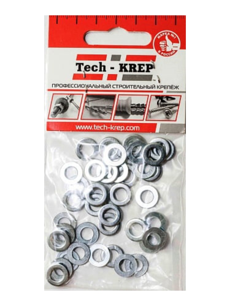 Плоская шайба DIN 125а М6, оцинкованная, 40 шт. в упаковке от Tech-Krep. Прочная, устойчивая к коррозии, подходит для строительства и ремонта.