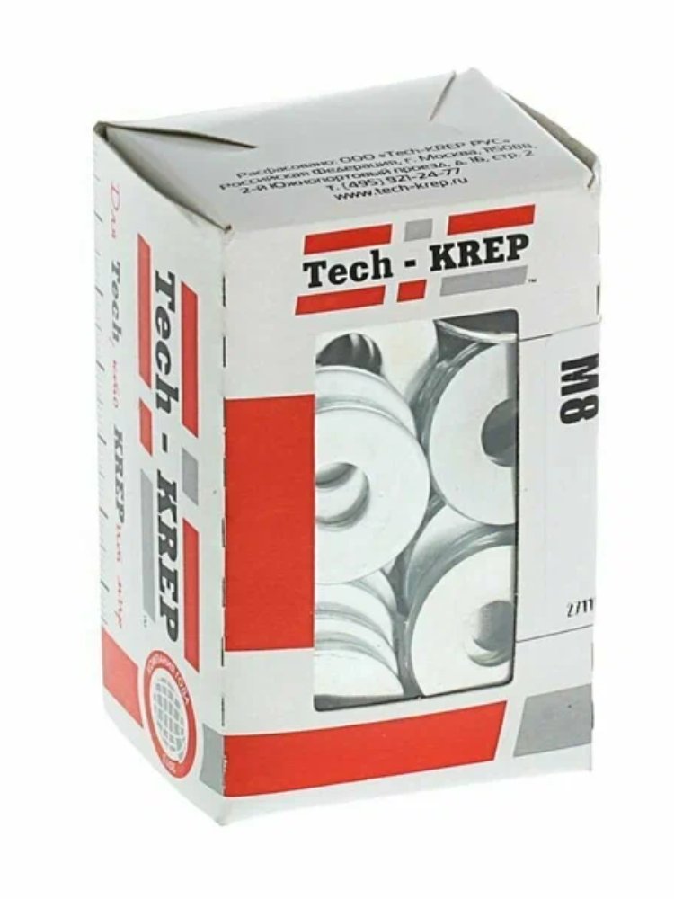 Шайба кузовная оцинкованная М8 DIN 9021 от Tech-Krep, 100 шт. в коробке с окном. Сталь с защитой от коррозии, для надежного крепления в строительстве.