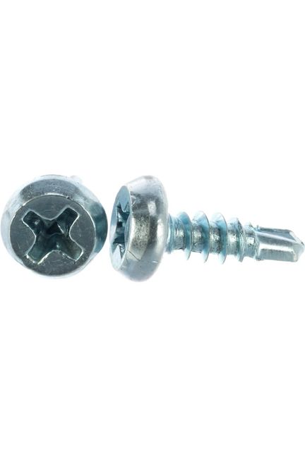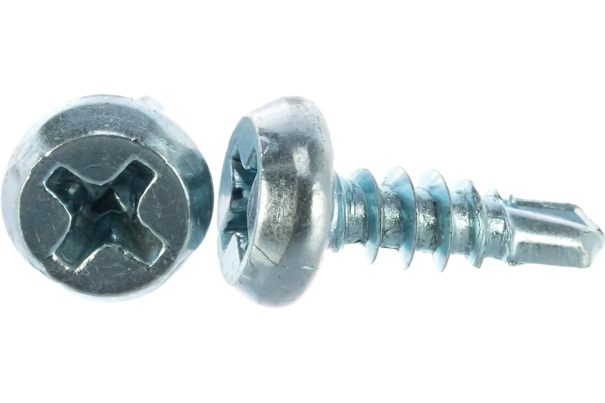 Универсальные саморезы с цинковым покрытием и острым сверлом для быстрого крепления металла и гипсокартона без предварительного сверления.