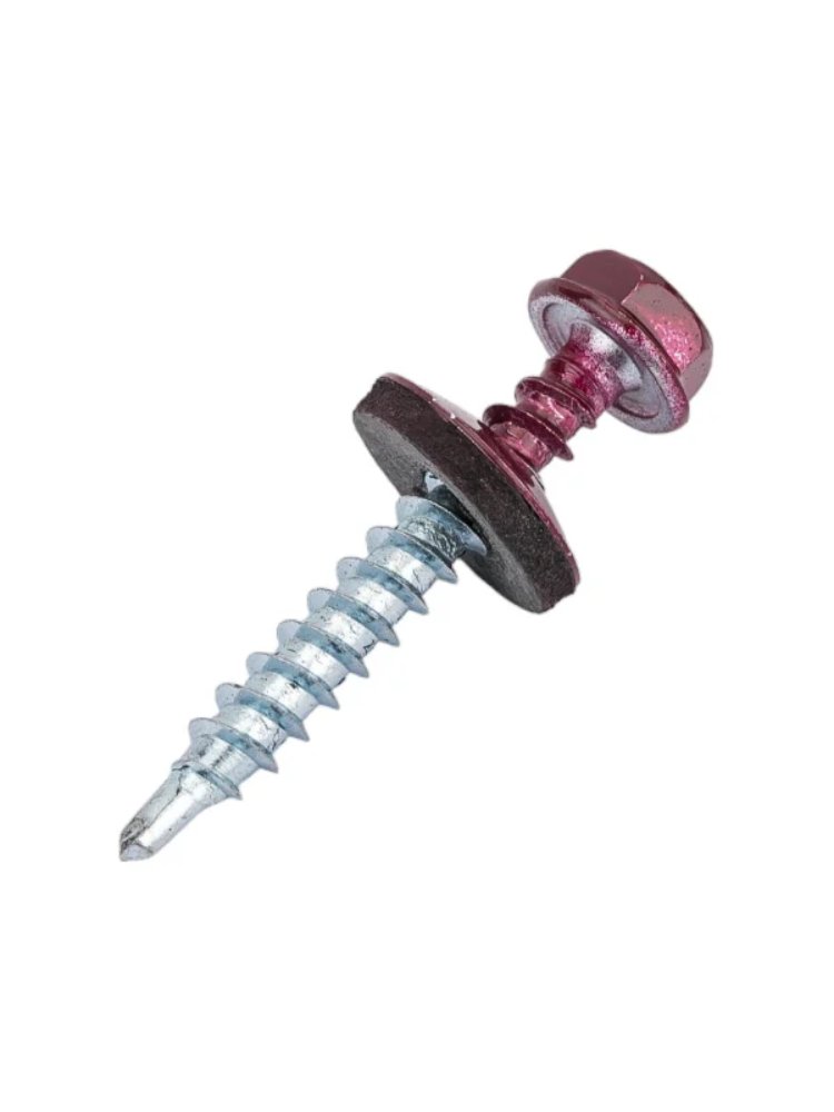 Саморез для кровли 4,8х35 мм, цвет "Красное вино", с оцинкованным покрытием и уплотнительной шайбой, надежен, устойчив к коррозии и идеален для профнастила.