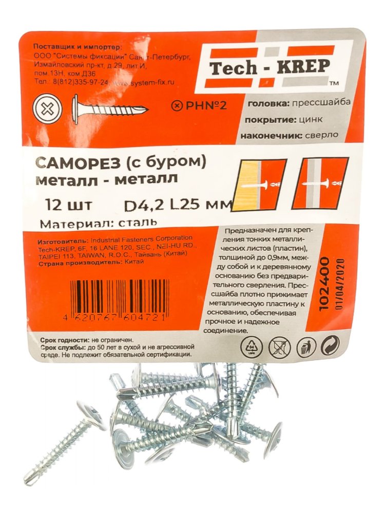 Саморез с п/ш св. 4,2х25 (12 шт) - пакет Tech-Krep