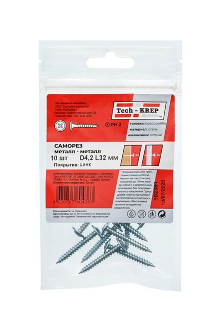 Саморез с п/ш св. 4,2х32 (10 шт) - пакет Tech-Krep в Спасск-Дальний