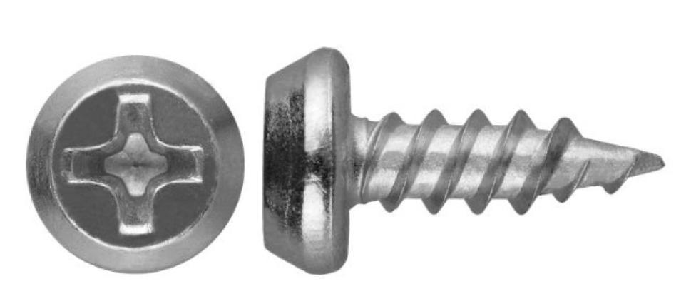 Прочные, оцинкованные саморезы с острым наконечником, для крепежа без сверления, устойчивые к коррозии.