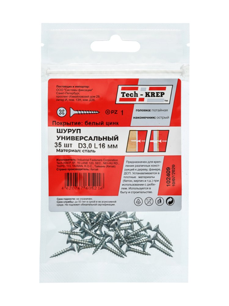 - Диаметр: 3,0 мм, длина: 16 мм — оптимально для сквозного и потайного крепления