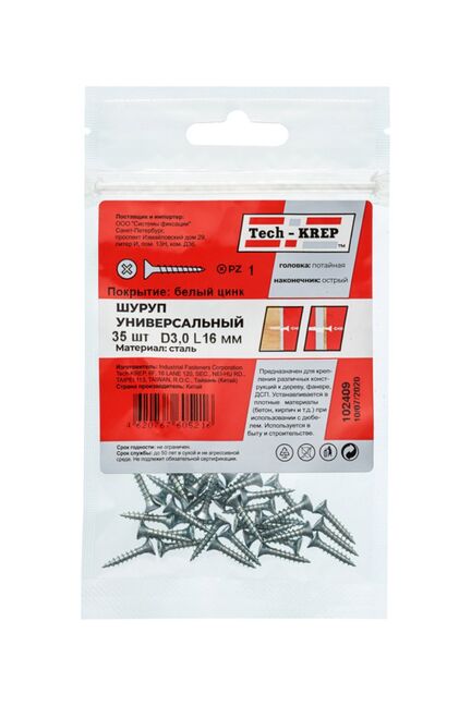 Саморез универс. желтый 3,0х16 пот. гол. (35 шт) - пакет Tech-Krep в Спасск-Дальний