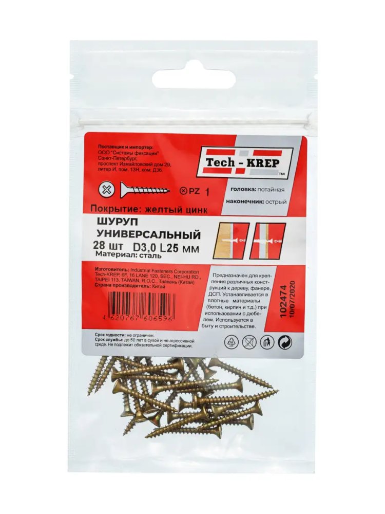 - Размер: 3,0×25 мм, количество в упаковке – 28 шт