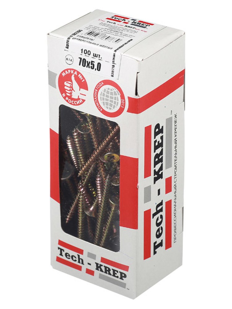 Саморез универс. желтый 5,0х70 пот. гол. (100 шт) - коробка с ок. Tech-Krep в Спасск-Дальний