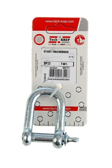 Скоба такелажная М12 (1 шт) от Tech-Krep – это надежный элемент крепления, предназначенный для соединения тросов, цепей и других такелажных конструкций. Изготовлена из высококачественной стали с антикоррозийным покрытием, что обеспечивает долговечность и устойчивость к внешним воздействиям. Диаметр резьбы М12 гарантирует прочное соединение даже при высоких нагрузках. Компактные размеры и удобная форма позволяют использовать изделие в различных условиях. Подходит как для профессионального, так и для бытового применения.