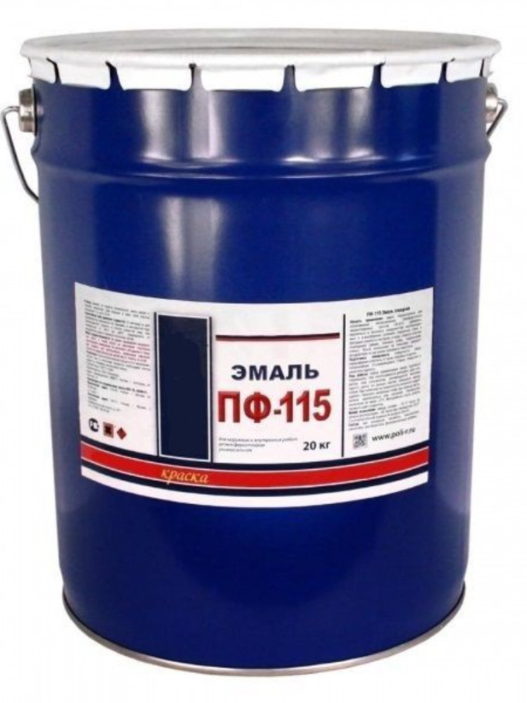 Эмаль ПФ-115 универсальный строительный лакокрасочный материал на основе алкидного лака. Обладает адгезией к различным типам поверхности. Предназначена для окраски деревянных, металлических и других поверхностей снаружи помещений, подвергающихся атмосферным воздействиям, и для окраски внутри помещений (оконные рамы, двери, кирпичные и бетонные поверхности, ДВП, ДСП и др.). Стойкая синяя эмаль 20 кг для дерева, металла, бетона — защищает от влаги и солнца, устойчива к износу, проста в нанесении, быстро сохнет.