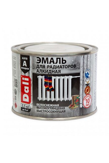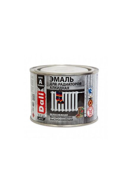 Быстросохнущая алкидная эмаль, устойчива к трещинам и пожелтению. Защищает радиаторы от коррозии, до 120°С.