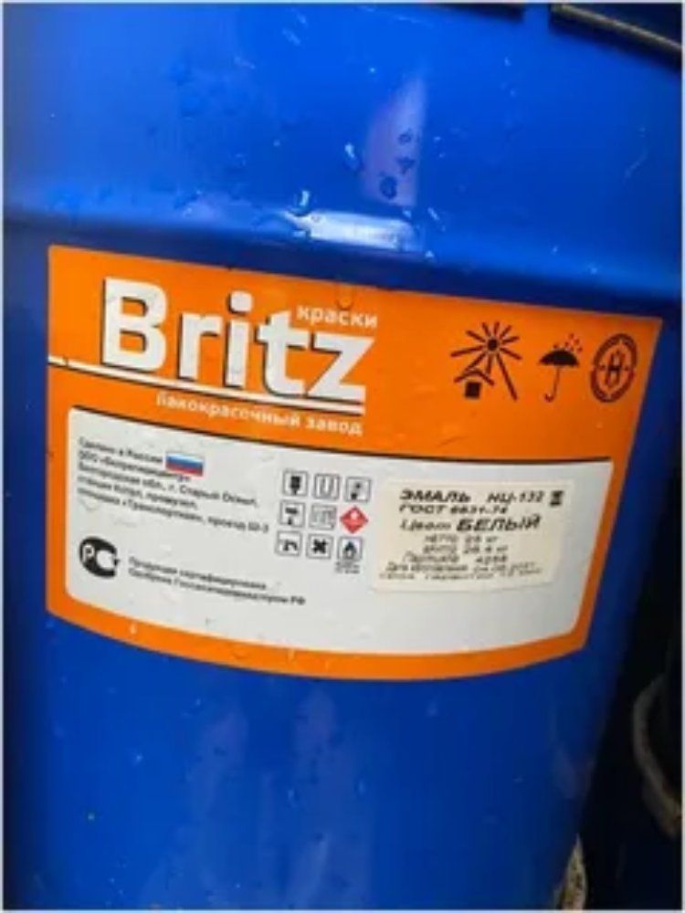 Эмаль НЦ-132 Белая 10кг ГОСТ Britz