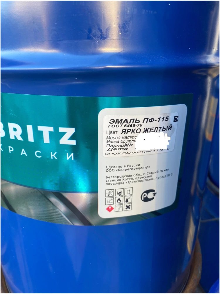 Эмаль НЦ-132 Желтая 10кг ГОСТ Britz