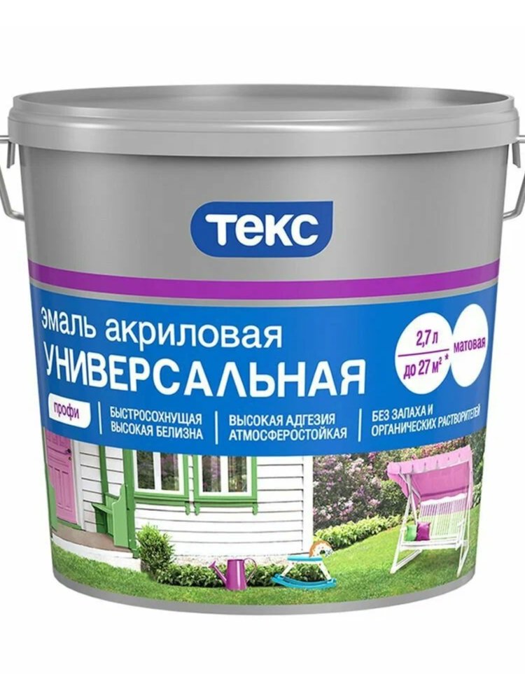 Идеальный выбор для безупречной отделки — универсальная акриловая белая матовая эмаль объемом 2,7 л. Подходит для внутренних и наружных работ, превосходно ложится на дерево, металл, бетон, штукатурку и ДСП, обеспечивая равномерное матовое покрытие без потёков.