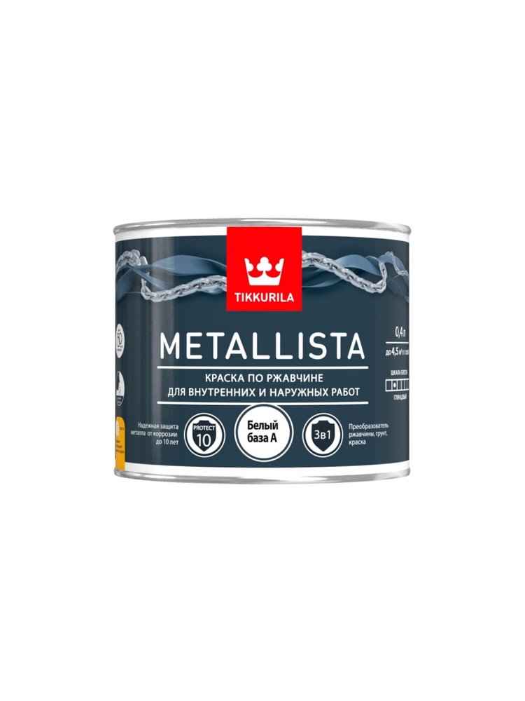 Грунт-эмаль по ржавчине METALLISTA белая глянц. 0,4кг Tikkurila в Спасск-Дальний