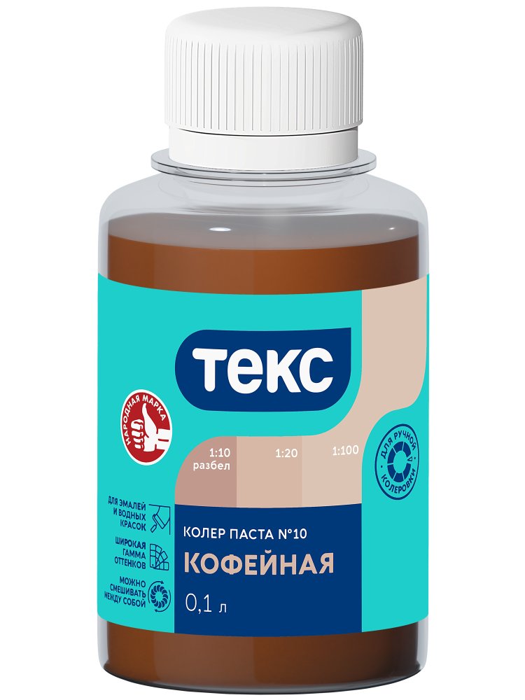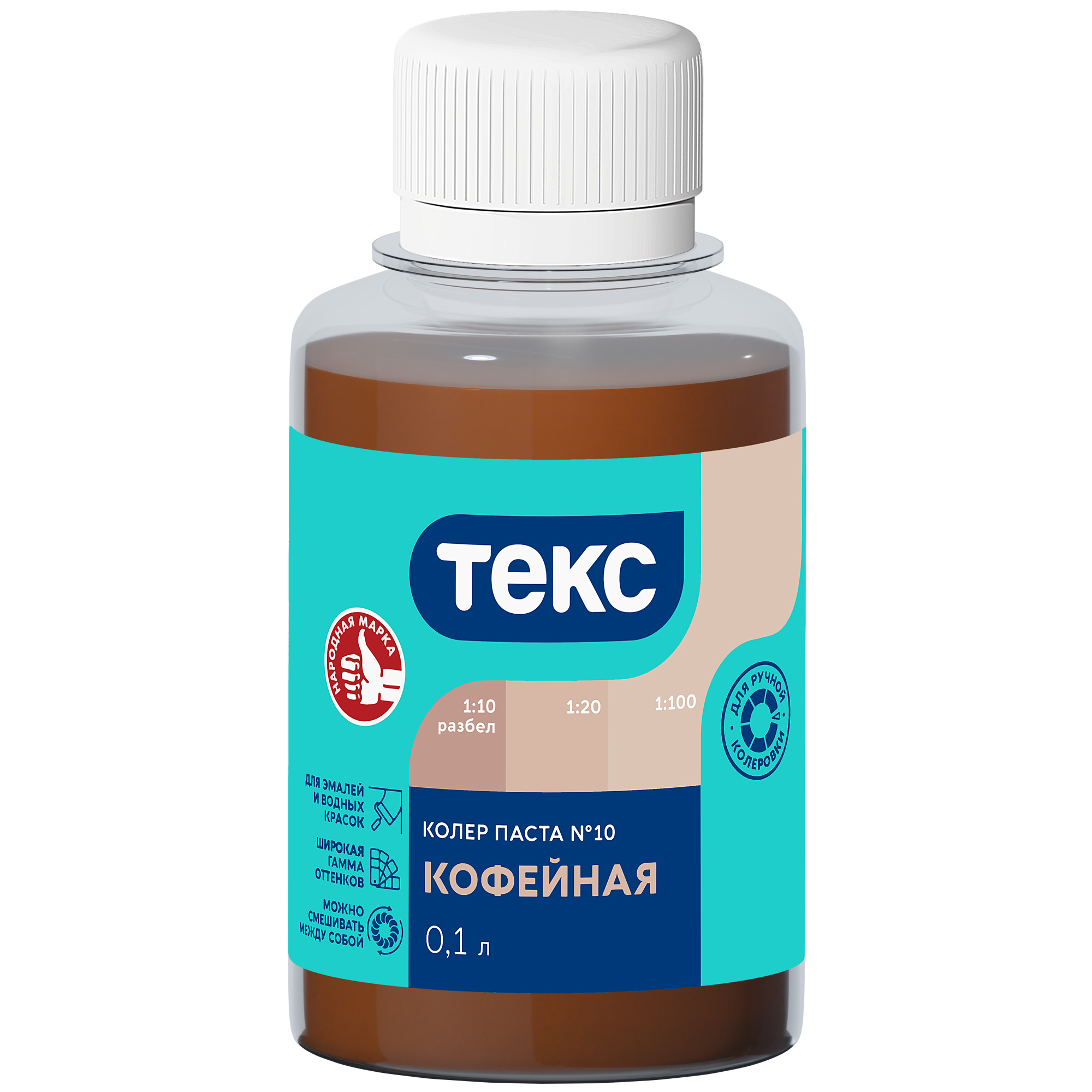 Колеровочная паста универсальная для эмалей, масляных и водно-дисперсионных красок. Для колеровки фасадных красок рекомендуется использовать только колер пасты: Кофейная №10, Бежевая №15, Карамель №22, Охра №09 . Не рекомендуется использовать для колеровки известковых и силикатных красок. Колер паста не используется в чистом виде. Универсальный колер для водно-дисперсионных красок, стойкий кофейный оттенок, легкое смешивание, экономичный расход, объем 0,1 л.