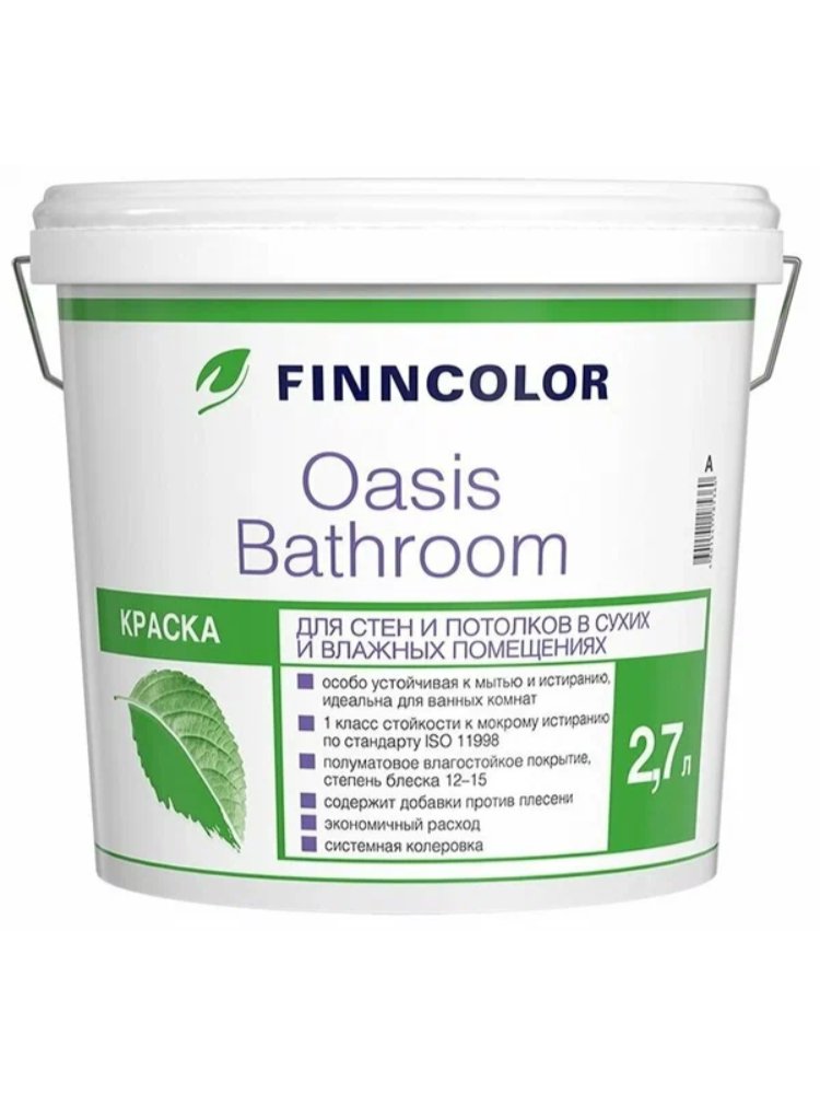 Краска для влаж. помещений OASIS BATHROOM A п/мат 2,7л Finncolor