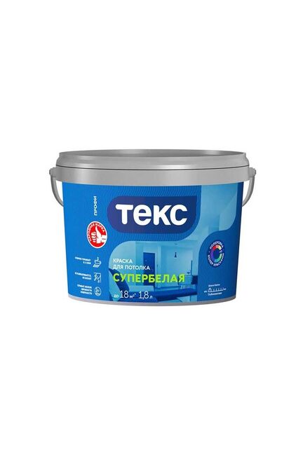 Сверхбелая водоэмульсионная краска, быстрое высыхание, матовый финиш, высокая укрывистость, безопасна и удобна для потолков в жилых помещениях.