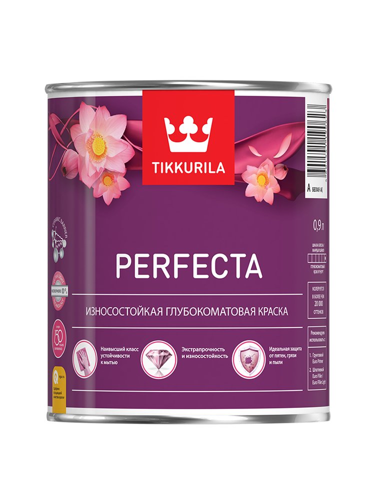 Легко создать безупречно белые и долговечные стены с водно-дисперсионной интерьерной краской глубокоматовой Perfecta 0,9 л от Tikkurila – идеальное решение для отделки жилых и общественных помещений.