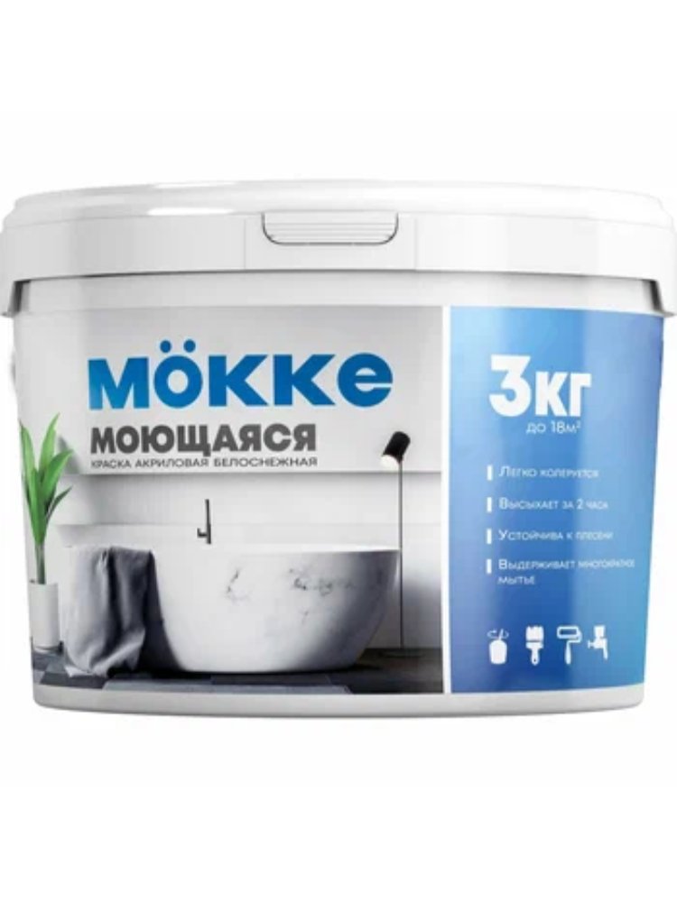 Краска ВД моющаяся б/снеж. 3кг акрил. MOKKE в Спасск-Дальний