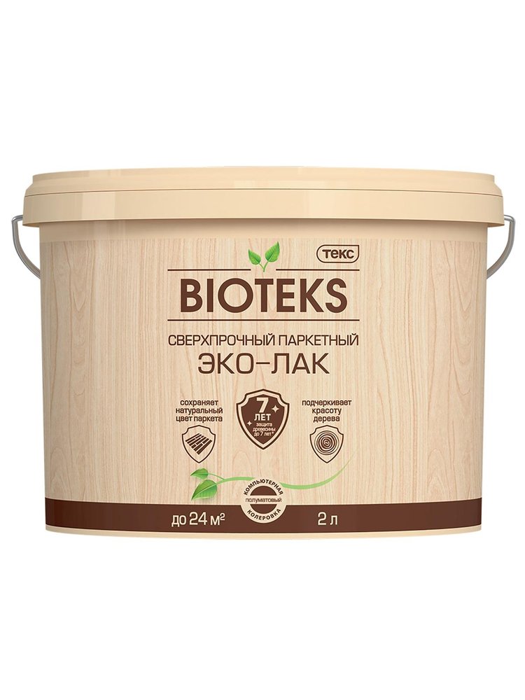 Предназначен для лакирования деревянных и паркетных полов внутри сухих помещений с нормальной эксплуатационной нагрузкой. Применяется для отделки изделий из древесины, декоративного камня, кирпича, для окраски всех типов обоев внутри сухих помещений. Время высыхания 2 часа, следующий слой можно наносить через – 2-3 часа; полное высыхание - 12 часов (до эксплуатации). Расход на 1 слой 14 - 18 м2/л для ранее лакированных поверхностей; 8 - 12 м2/л для новых поверхностей. Разбавитель вода. Срок службы покрытия Не менее 7 лет в сухих помещениях при строгом соблюдении технологии нанесения и эксплуатации . Прозрачный водный лак, 2 л, с глянцевым блеском. Быстро сохнет, не желтеет, устойчив к истиранию и влаге. Подходит для дерева и паркета.