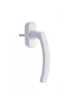 Надёжная белая балконная ручка с крепёжом, устойчива к влаге, проста в установке, подходит для пластиковых окон и дверей.