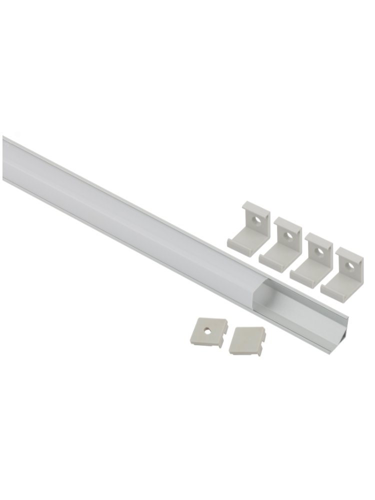 Комплект предназначен для установки светодиодных лент. За счёт отведения тепла работающих светодиодов увеличивает срок службы ленты. Анодированное покрытие обеспечивает устоичивость к воздействиям окружающей среды, обеспечивает гладкость и легко окрашивается. Эстетично смотрится в интерьере, обеспечивает механическую защиту. В комплекте угловой алюминиевый профиль CAB280 16х16мм, 2м и квадратный экран 2м, 4 пластиковых крепления и 2 заглушки. Алюминиевый угловой профиль 16×16 мм с квадратным рассеивателем для аккуратной и долговечной подсветки; подходит для монтажа в углах, 2 метра, 5 шт.