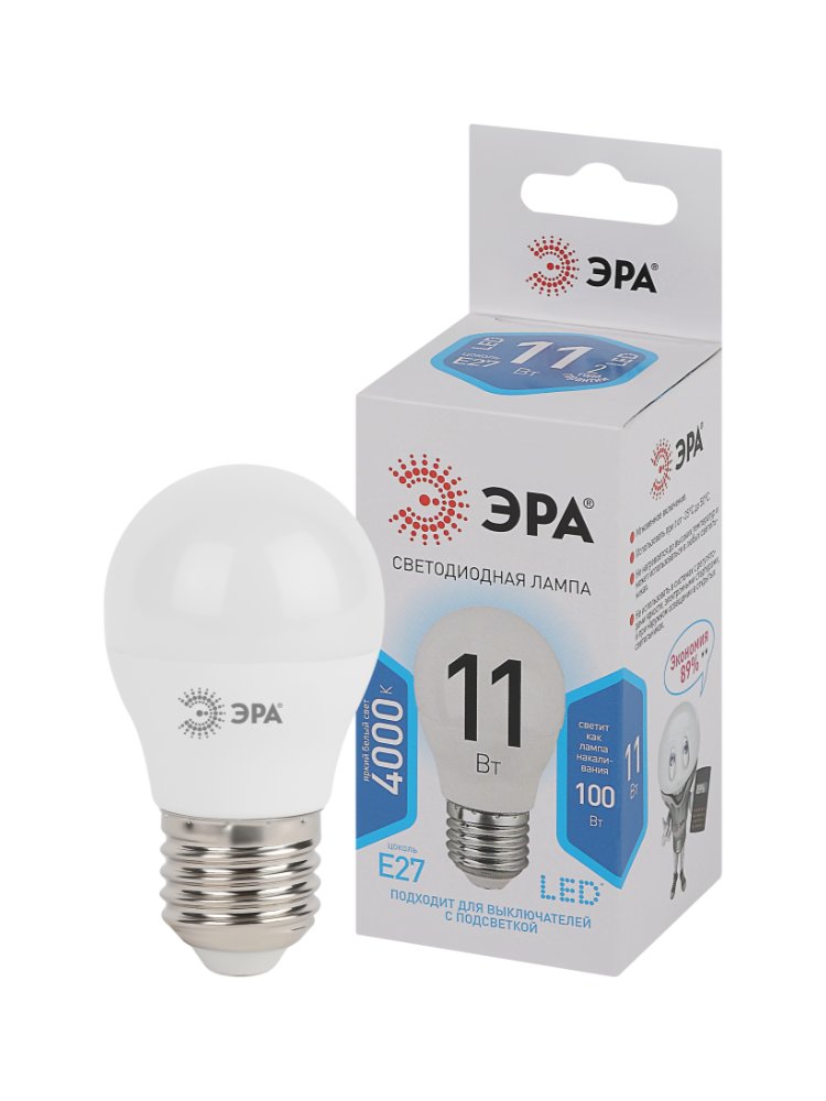 Светодиодная лампа 11 Вт, 4000К, 880 лм, цоколь E27, яркий нейтральный свет, энергоэффективная и долговечная, идеальна для дома и офиса.