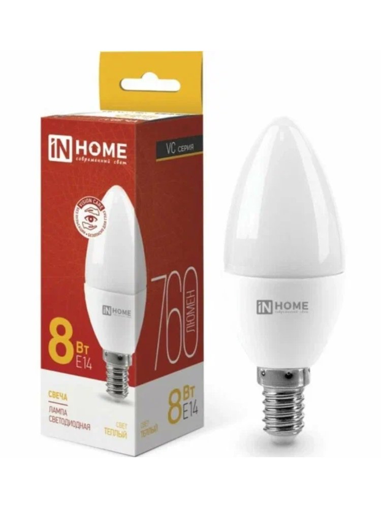 Лампа светодиодная LED-СВЕЧА 8Вт 230В 3000К 600Лм Е14 VC IN HOME в Спасск-Дальний