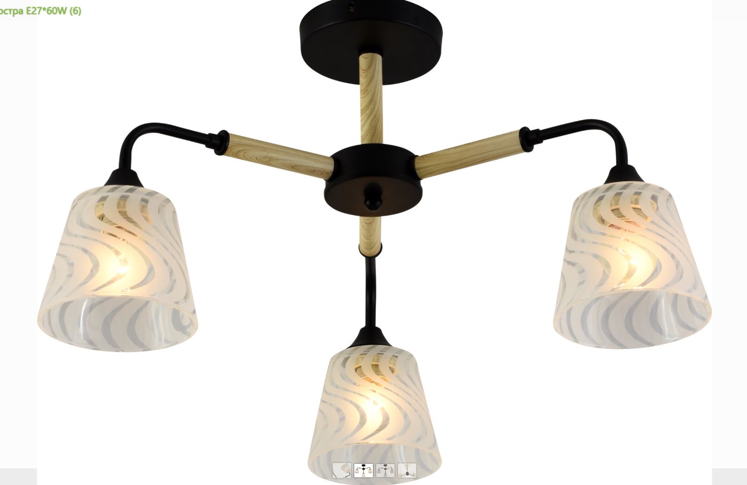 Люстра 3 лампы 10628/3 BK+WOOD черный/дерево E27*60W в Спасск-Дальний