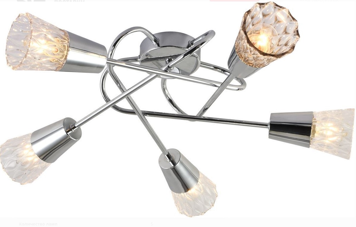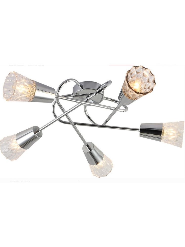 Потолочная люстра на 5 ламп, цоколь E14, хром, до 200 Вт, для освещения гостиных, спален и офисов. Современный дизайн, лёгкая установка.