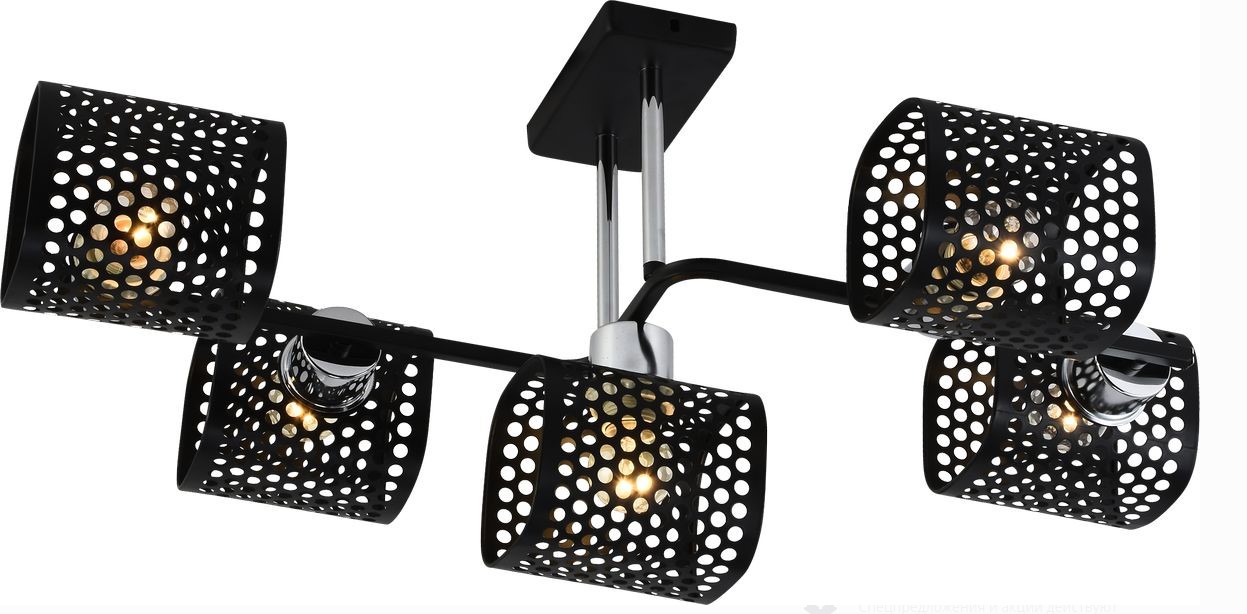 Потолочная люстра на 5 ламп Е27 до 60Вт, стильный черный с хромом, для эффективного освещения жилых и офисных помещений до 20 м².