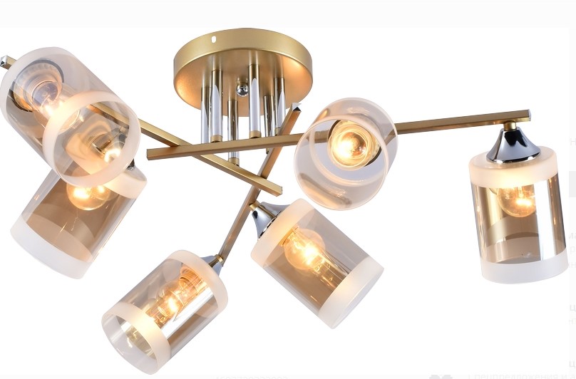 Шестирожковая люстра с покрытием золото/хром, для ламп Е27 до 60 Вт, стильно преобразит гостиную, спальню или офис и обеспечит яркое освещение.