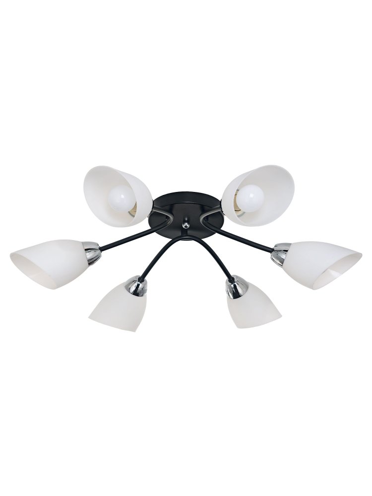 Стильная люстра с 6 лампами в черно-хромовом исполнении идеально дополнит современный интерьер. Корпус выполнен из прочного металла, обеспечивая долговечность и надежность конструкции. Модель рассчитана на цоколь E14 с максимальной мощностью каждой лампы 60 Вт, что позволяет создать яркое и комфортное освещение в помещении. Дизайн сочетает в себе лаконичность и элегантность, а комбинация черного и хромированного цвета добавляет изысканности. Люстра подходит для натяжных и подвесных потолков, а также легко монтируется с помощью стандартного крепления.