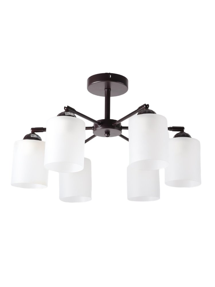Потолочная люстра в стиле модерн, 6 ламп. Стильная потолочная люстра на 6 ламп с бронзовым декором. Идеальна для освещения гостиной, спальни или кухни до 18 м². Простая установка.