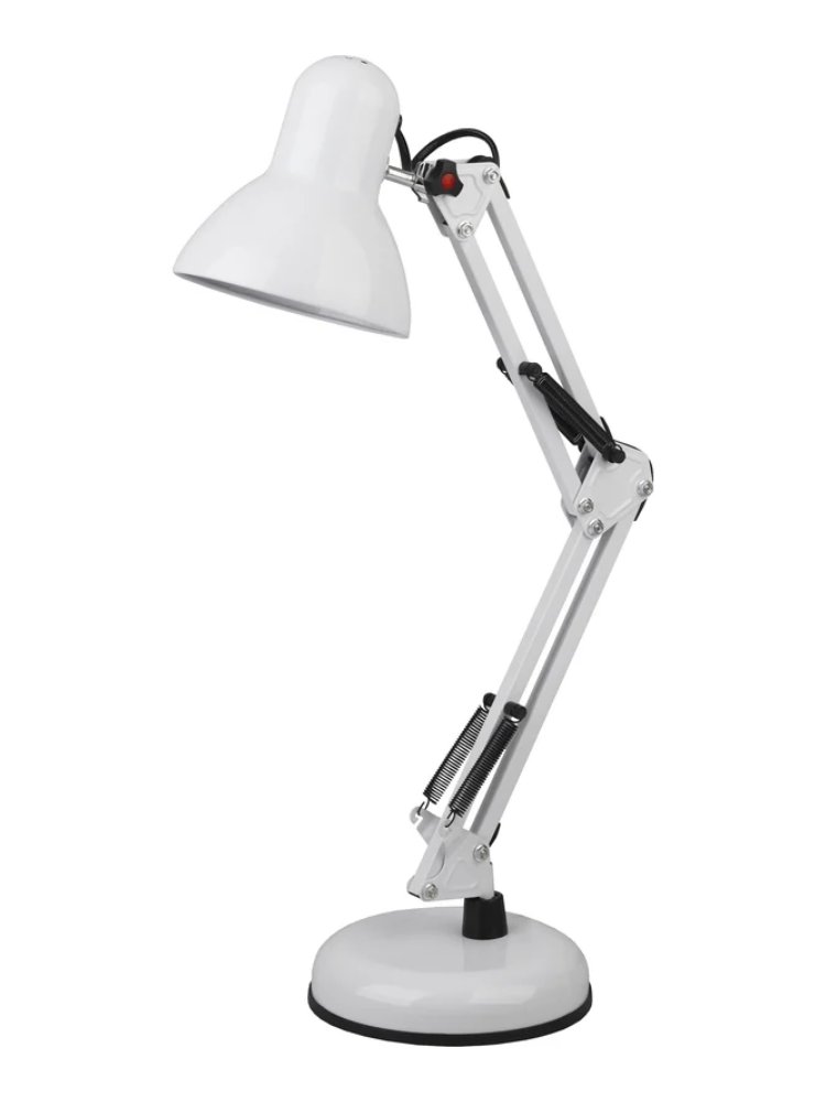 Настольный светильник ЭРА N-214-E27-40W-W классического дизайна может использоваться с разными источниками света - лампой накаливания, компактной люминесцентной лампой (КЛЛ) или светодиодной (LED) лампой. Выключатель на проводе. Устойчивое основание. Высота плафона регулируется двухсекционной сгибающейся стойкой, направление света - поворотом и наклоном плафона в любом направлении. Гарантия 1 год. Настольная лампа E27, до 40 Вт, белый цвет, прочный корпус — оптимальна для работы, учебы и дополнительного освещения дома или офиса.