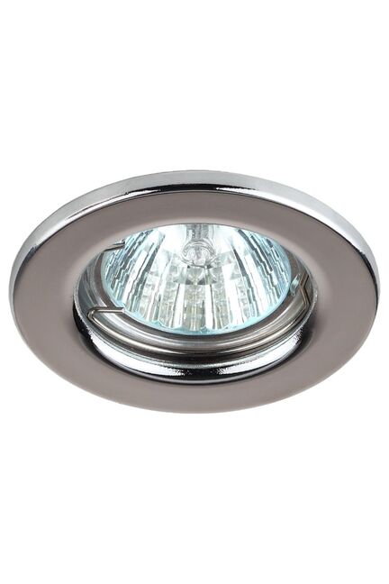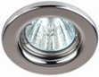 Максимальная мощность лампы составляет 50 Вт. Корпус встраиваемого светильника изготовлен из стали, что делает его особенно удобным и надежным в использовании. Диаметр отверстия, требуемого для установки светильника составляет 60 миллиметров, а диаметр самого светильника – 80 миллиметров. Точечный светильник 12V GU5.3, до 50Вт, хром. Для потолков и зональной подсветки. Прочный, стильный, легко монтируется, универсален.