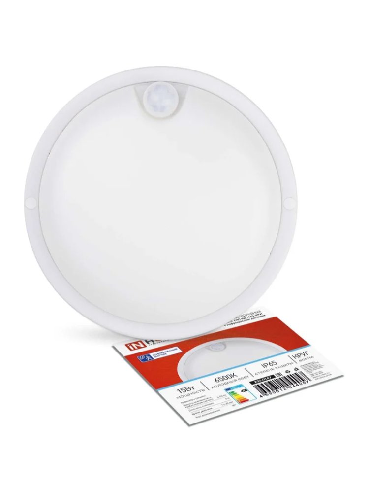 Герметичный светильник IP65 ТМ IN HOME с датчиком движения будет особенно полезен в местах с малой проходимостью. Светильник с датчиком движения поможет значительно сэкономить на потреблении электроэнергии. Дальность действия датчика – 3-8 метров. Угол срабатывания – 120 градусов. Ударопрочный корпус прибора позволяет эксплуатировать светильник в сфере ЖКХ, общественных, производственных помещениях с повышенным содержанием пыли и влаги, а также для наружного освещения с установкой под навесом (в диапазоне рабочих температур от -20 до +55°C). Современное поколение высокоэффективных светодиодов класса SMD обеспечивает мощную светоотдачу. Матовый плафон превосходно рассеивает световой пучок, излучая мягкий, комфортный белый свет холодного оттенка. Способ установки: универсальный настенно-потолочный (на вертикальные и горизонтальные поверхности) с помощью саморезов и дюбелей (имеются в комплекте). Высота установки: не более 4-х метров. Срок службы – около 30 000 часов. Яркий светодиодный светильник 15 Вт с датчик