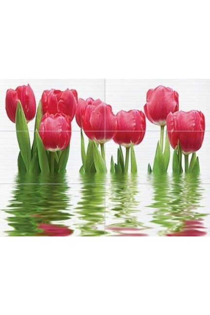 Декоративное панно 750×1000 мм с изысканным рисунком тюльпанов: влагостойкое, прочное, легко монтируется, идеально для красивого интерьера.