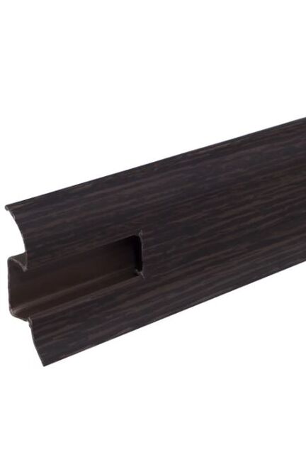 Утонченный и высокий профиль (58 мм) с острыми краями. Благодаря съёмной панели монтаж электрических проводов, покраска стен, оклеивание обоями возможны без демонтажа профилей. Конструкция позволяет монтировать и демонтировать плинтус без использования инструментов. Существует возможность размещения большого количества проводов, в том числе после монтажа. Специальная двухслойная технология: помимо слоя краски, дополнительно покрывается специальным лаком, благодаря чему его покрытие становится однородным, а это дополнительно защищает изделие от разного вида механических повреждений и вредного воздействия лучей УФ. Благодаря эластичному материалу, плинтус идеально прилегает даже к неровностям стен и полов. Пластиковый плинтус 58мм с кабель-каналом, прочный, влагостойкий, современный дизайн венге для быстрой и аккуратной отделки пола.