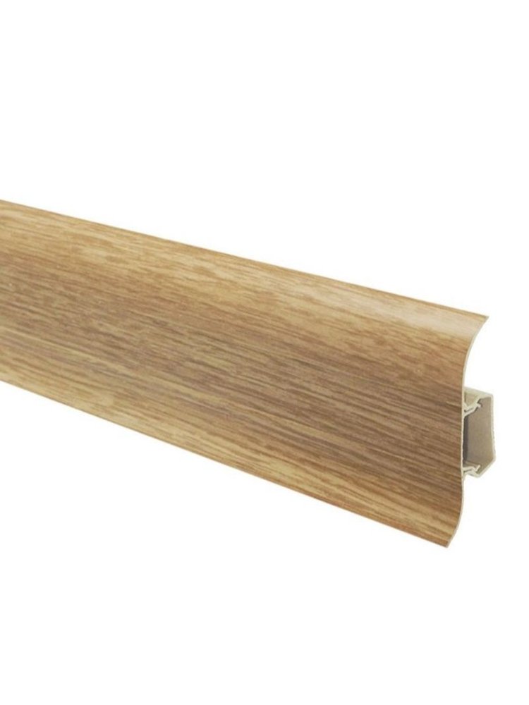 Утонченный и высокий профиль (58 мм) с острыми краями. Благодаря съёмной панели монтаж электрических проводов, покраска стен, оклеивание обоями возможны без демонтажа профилей. Конструкция позволяет монтировать и демонтировать плинтус без использования инструментов. Существует возможность размещения большого количества проводов, в том числе после монтажа. Специальная двухслойная технология: помимо слоя краски, дополнительно покрывается специальным лаком, благодаря чему его покрытие становится однородным, а это дополнительно защищает изделие от разного вида механических повреждений и вредного воздействия лучей УФ. Благодаря эластичному материалу, плинтус идеально прилегает даже к неровностям стен и полов. Плинтус 58 мм с кабель-каналом, в декоре дуб Пиреней. Стойкий к влаге и ударам. Легко устанавливается, скрывает провода. Длина — 2,2 м.