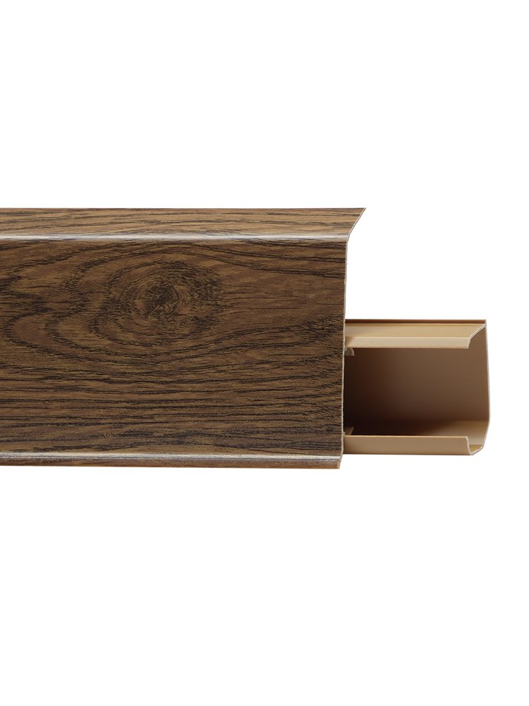 Выбирайте надёжные и современные решения для отделки вашего интерьера! Высококачественный плинтус Tera цвета "Дуб Борнео" идеально подходит для завершения напольного покрытия в жилых и коммерческих помещениях: защищает соединение стены и пола, скрывает неровности монтажа, а также элегантно декорирует помещение.