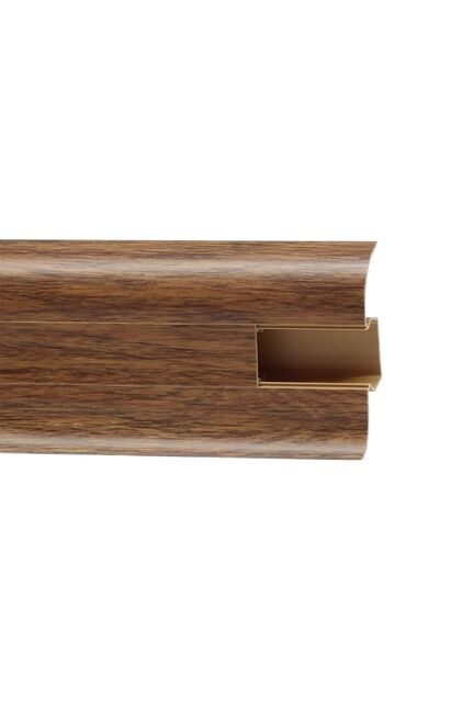 Утонченный и высокий профиль (58 мм) с острыми краями. Благодаря съёмной панели монтаж электрических проводов, покраска стен, оклеивание обоями возможны без демонтажа профилей. Конструкция позволяет монтировать и демонтировать плинтус без использования инструментов. Существует возможность размещения большого количества проводов, в том числе после монтажа. Специальная двухслойная технология: помимо слоя краски, дополнительно покрывается специальным лаком, благодаря чему его покрытие становится однородным, а это дополнительно защищает изделие от разного вида механических повреждений и вредного воздействия лучей УФ. Благодаря эластичному материалу, плинтус идеально прилегает даже к неровностям стен и полов. Плинтус маскирует стыки пола и стены, подходит под кабель-канал, влагостойкий, высота 58 мм, длина 2,5 м, легкая установка.