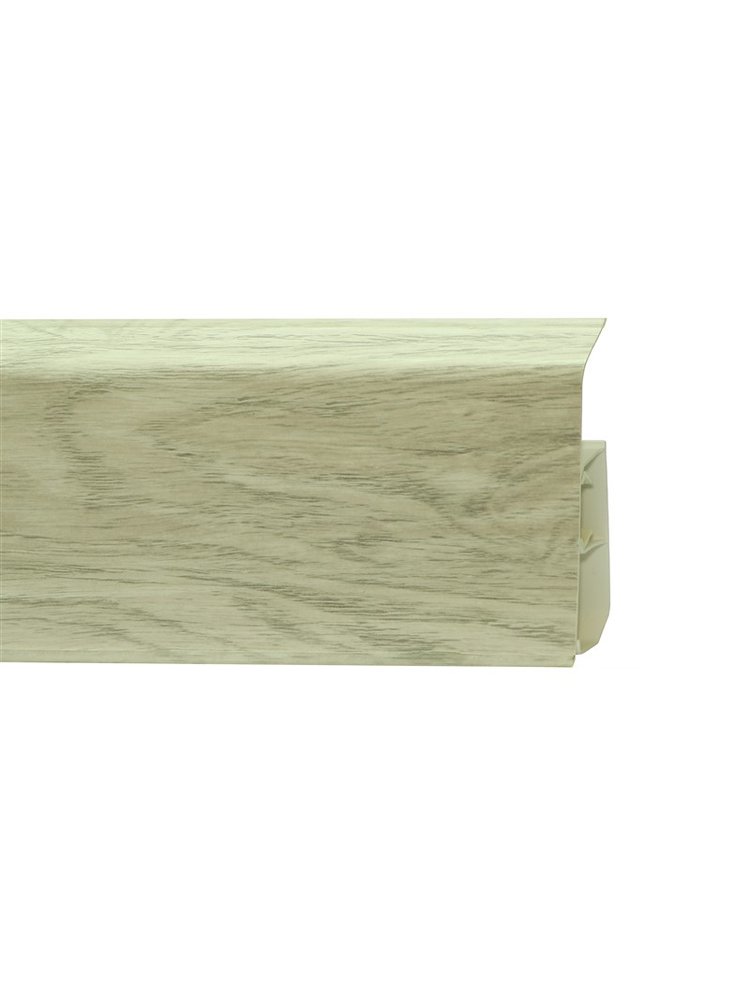 Утонченный и высокий профиль (80 мм) с острыми краями. Благодаря съёмной панели монтаж электрических проводов, покраска стен, оклеивание обоями возможны без демонтажа профилей. Конструкция позволяет монтировать и демонтировать плинтус без использования инструментов. Существует возможность размещения большого количества проводов, в том числе после монтажа. Специальная двухслойная технология: помимо слоя краски, дополнительно покрывается специальным лаком, благодаря чему его покрытие становится однородным, а это дополнительно защищает изделие от разного вида механических повреждений и вредного воздействия лучей УФ. Благодаря эластичному материалу, плинтус идеально прилегает даже к неровностям стен и полов. Плинтус 80 мм из прочного ПВХ с текстурой "Дуба Рене", легко монтируется, скрывает провода и надежно защищает стыки пола и стены.