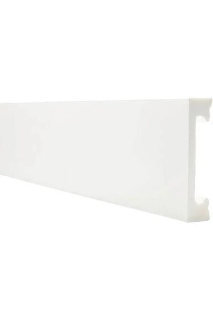 Напольный плинтус выполнен из высококачественного дюрополимера, устойчивого к ударам, влаге, грибку и бытовым повреждениям, что делает его отличным выбором для жилых и коммерческих помещений любого типа.