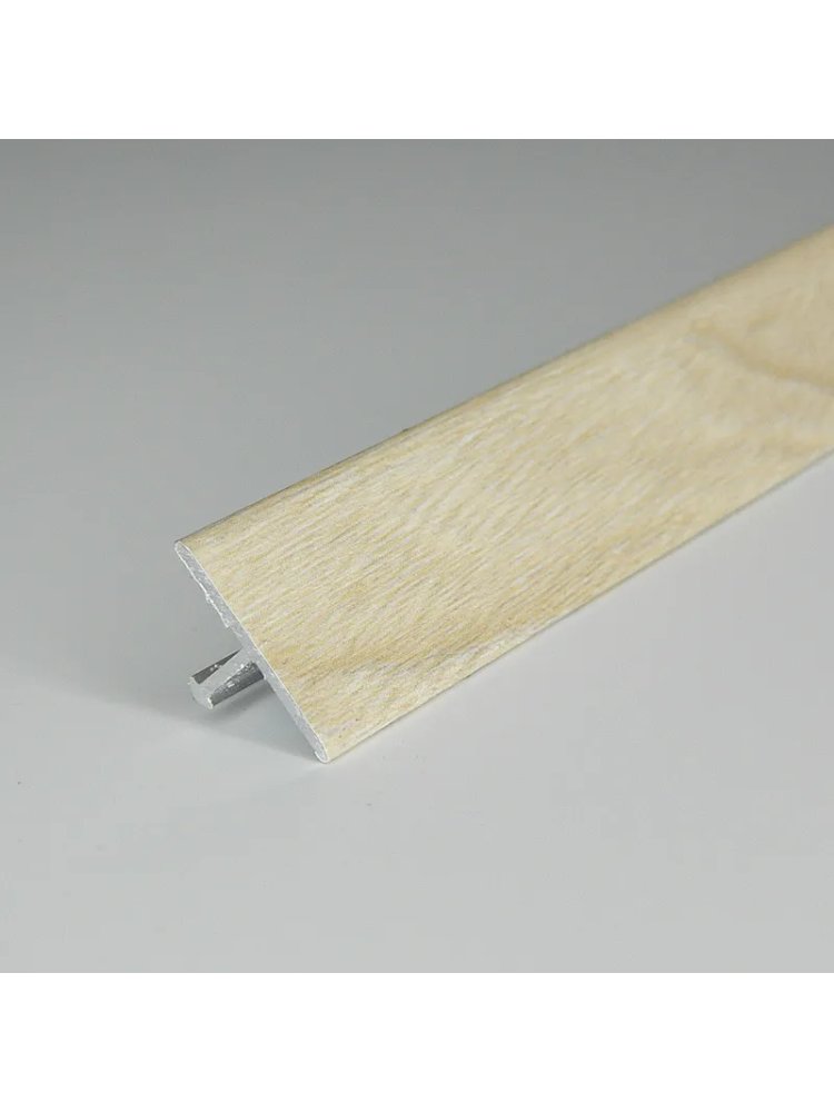 Т-образный алюминиевый порог 0,9 м, 23 мм, ламинированный, "Дуб Гренланд", устойчив к износу, скрывает стыки напольных покрытий разного уровня.