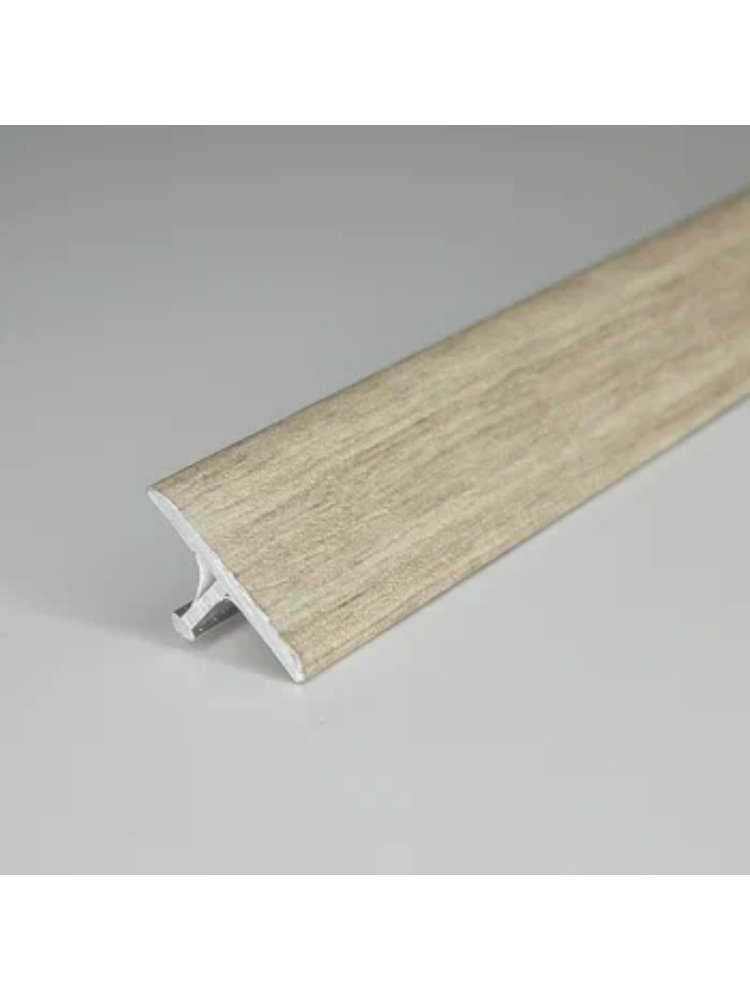 Элегантное решение для аккуратных стыков — ламинированный Т-образный алюминиевый порог 20×0,9 м в цвете "Светлый орех". Идеален для оформления переходов между напольными покрытиями разной высоты: ламинат, паркет, плитка, линолеум.