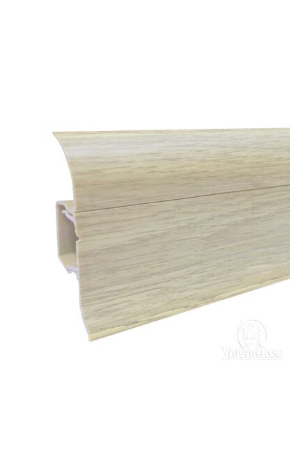 Утонченный и высокий профиль (58 мм) с острыми краями. Благодаря съёмной панели монтаж электрических проводов, покраска стен, оклеивание обоями возможны без демонтажа профилей. Конструкция позволяет монтировать и демонтировать плинтус без использования инструментов. Существует возможность размещения большого количества проводов, в том числе после монтажа. Специальная двухслойная технология: помимо слоя краски, дополнительно покрывается специальным лаком, благодаря чему его покрытие становится однородным, а это дополнительно защищает изделие от разного вида механических повреждений и вредного воздействия лучей УФ. Благодаря эластичному материалу, плинтус идеально прилегает даже к неровностям стен и полов. Соединитель T-Plast Дуб Полярный 58 мм, упаковка - 2 шт. Прочный пластик, устойчив к влаге, имитирует дерево. Для соединения плинтусов в стыках.